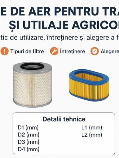 Un sistem cu Filtre hidraulice pentru tractoare și utilaje potrivite oferă fiabilitate mare, timpi de ciclu constanți, consum redus de energie și protecție excelentă pentru pompe, distribuitoare și cilindri. Întreținerea predictivă (verificarea indicatorului de colmatare, analize periodice de ulei, filtrare offline) prelungește durata de viață a instalației și scade costul total de exploatare. Pentru alegere rapidă după marcă și model sau după dimensiuni (D1, D2, H1, H2), echipa Agropeter te poate ajuta cu identificare pe cod OE sau pe măsurători, astfel încât utilajul să revină în câmp în cel mai scurt timp și cu risc minim de avarii recurente.